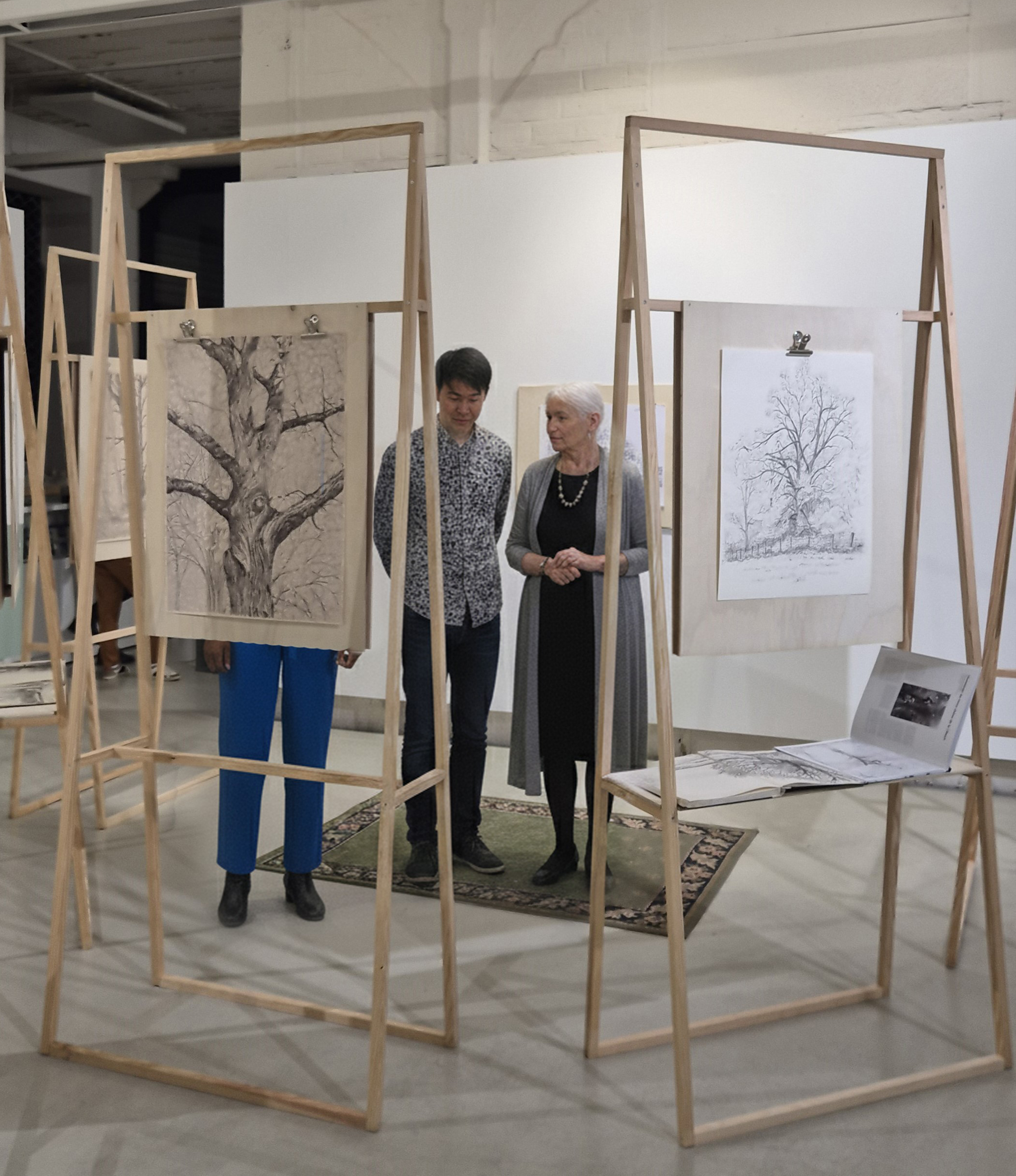 La démarche de création choisie a pour ambition de témoigner de l’importance de l’arbre dans notre culture commune, de sa puissance symbolique et de sa place dans le paysage et les écosystèmes. L’été 2023 fut l’occasion de mener à bien ce projet de dessins autour de la forêt, élément constitutif et omniprésent du territoire haut-marnais. Pour incarner la force des relations que l’Homme entretient avec les arbres, j’ai rencontré 11 personnes, choisies pour les liens intenses qu’ils et elles ont développés avec la nature, et plus spécifiquement avec un arbre de leur choix. Les rencontres organisées «in situ» ont d’abord permis la découverte de chaque arbre, puis elles ont fait la part belle à l’écoute et à l’enregistrement de l’histoire singulière liée à chacun d’entre eux. Est ensuite venu le temps de l’observation et du dessin.